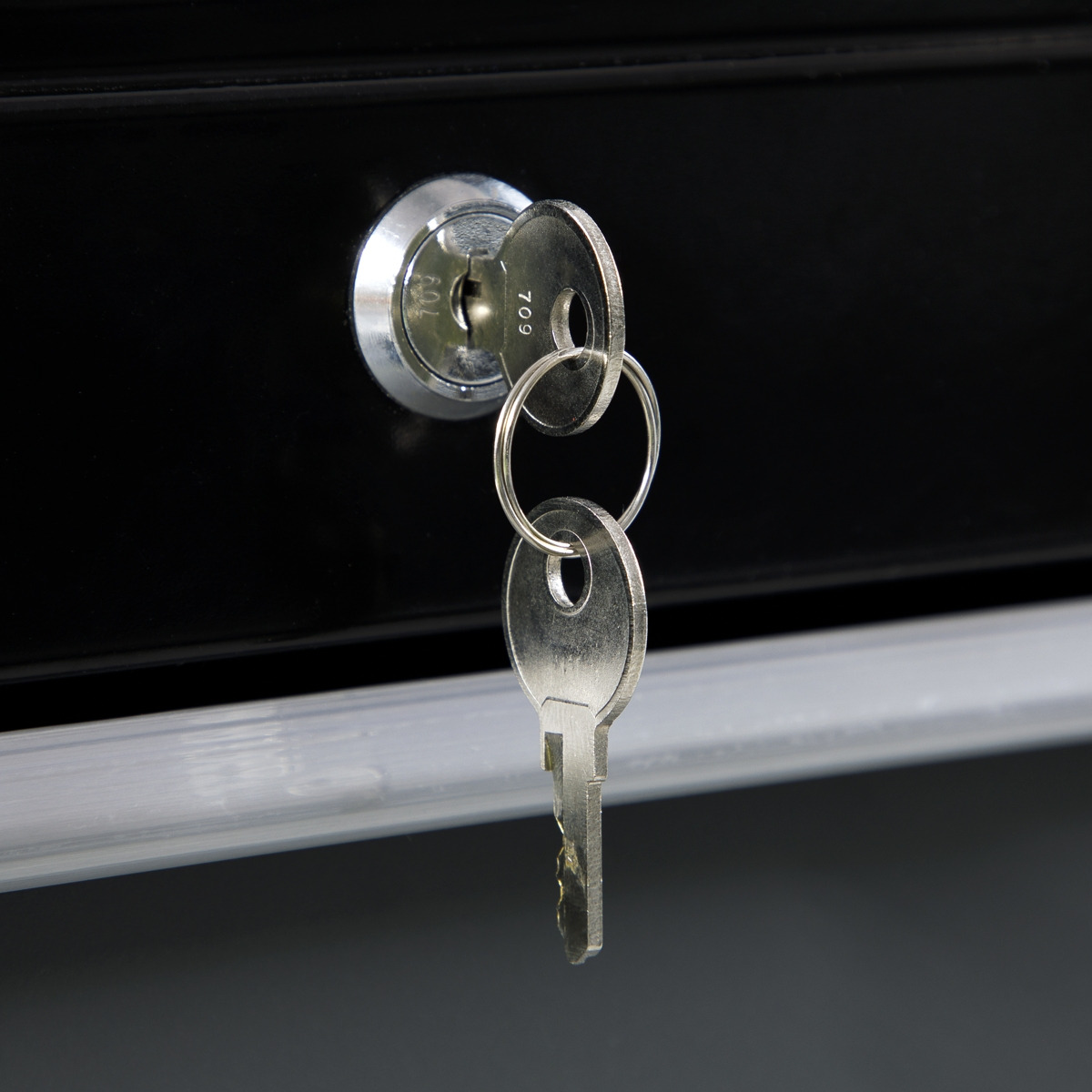 - Features smooth ball-bearing drawer slides and cylinder lock for additional security.