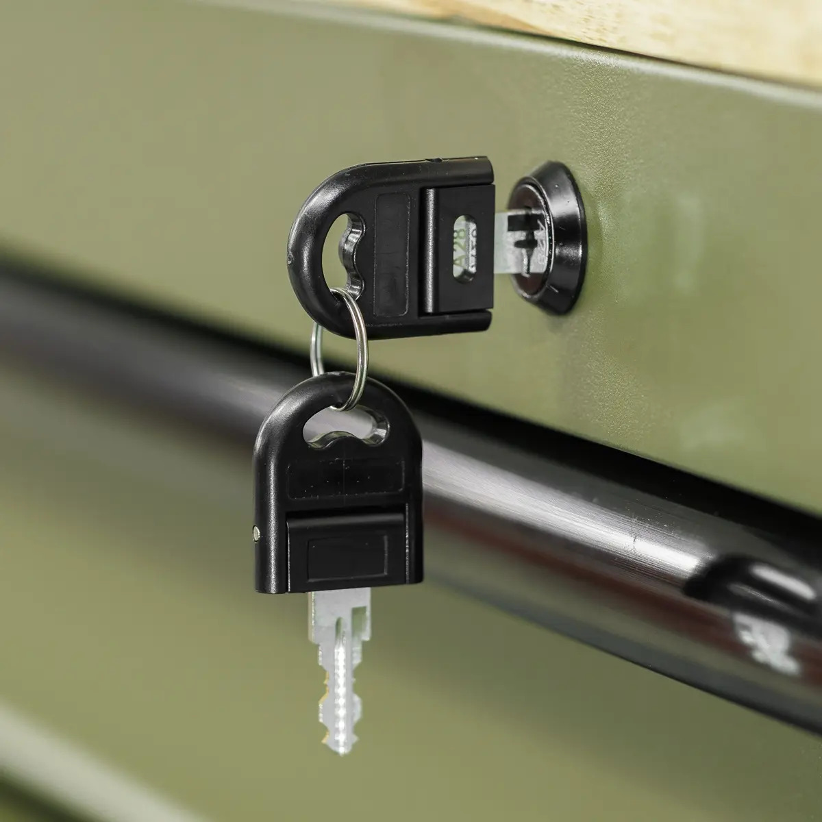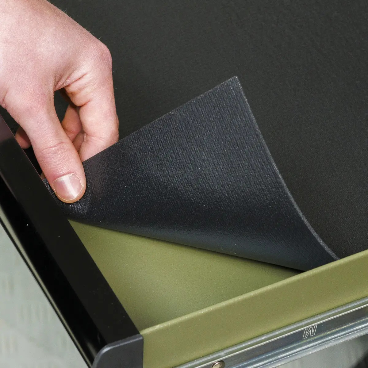 - STYLISH - Rust and solvent resistant matt khaki finish with anodized black drawer handles.