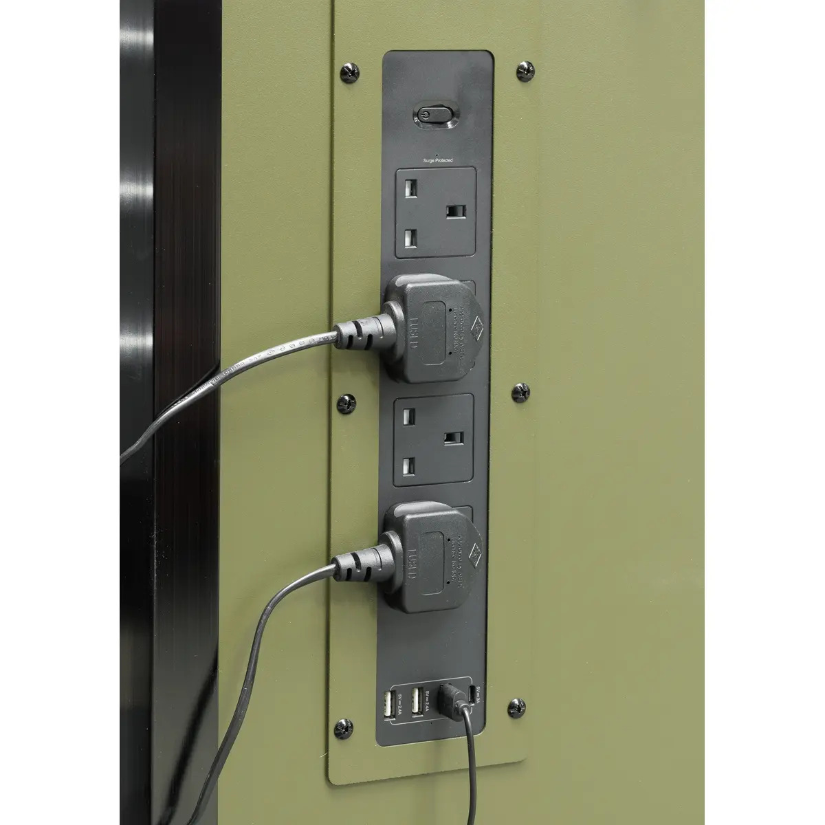 - POWER BAR - Features 4 x 230V sockets, 3 x 5V (2.4A) USB sockets and 1 x 5V (3A) USB-C socket.