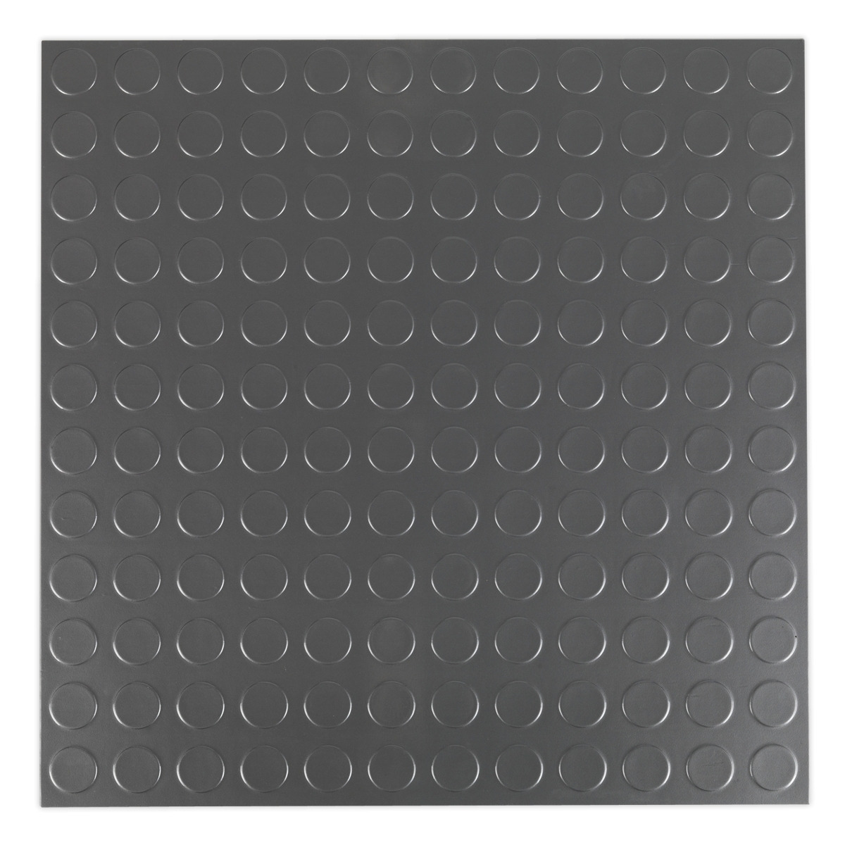 Stylish vinyl floor tiles ideal for any garage or workshop environment. Tiles are quick and simple to install with a peel and stick backing, no need for any additional adhesive. Provides an anti-slip surface which is durable, flame-resistant and water-resistant. Fibreglass reinforced with a 0.5mm wear layer and a UV coating. Supplied in a pack of 16, covering 3.34m². Silver coin finish.
