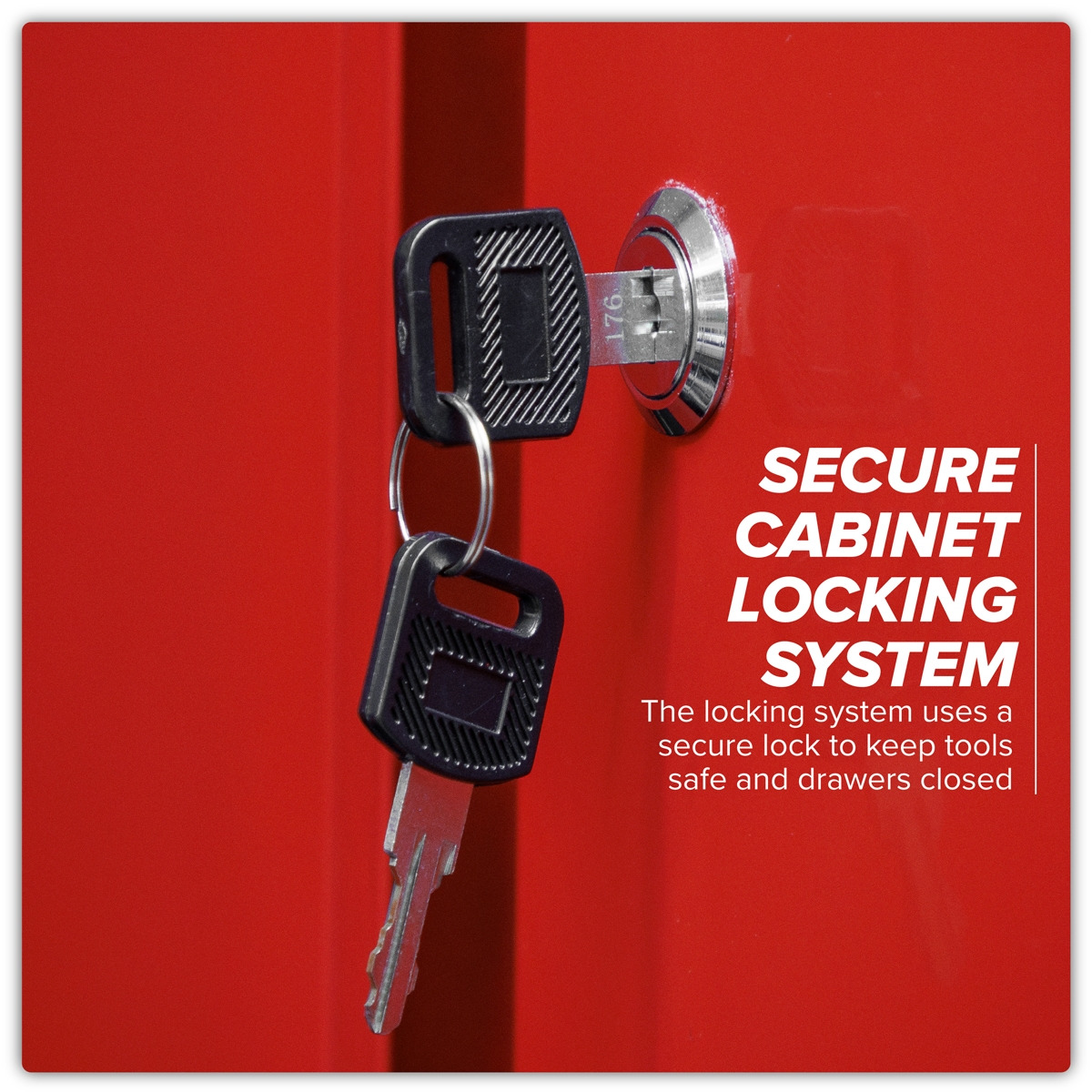 - Features perforated pegboards on the inside of each door, ideal for tool storage.