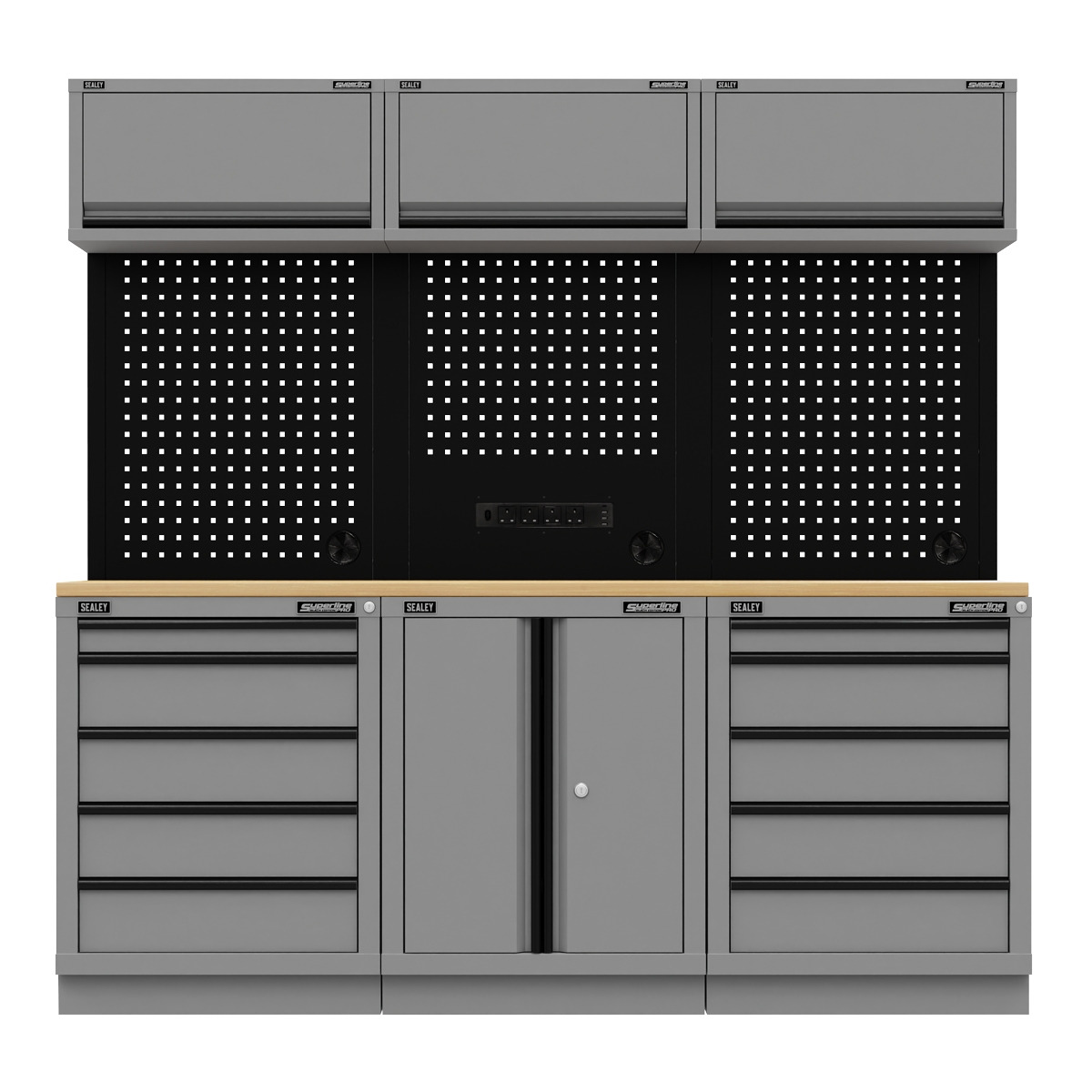 Sealey APMSBESTACK04WW Superline PRO® Black Edition Storage System with Rubber Wood Worktop 2.04m