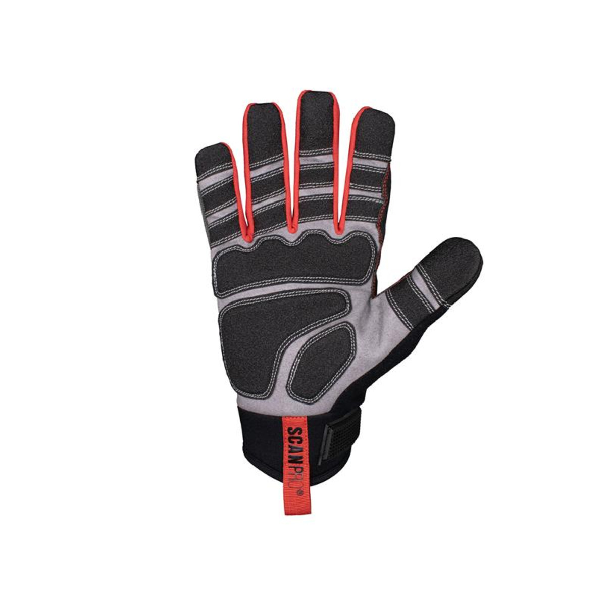 The Scan Mechanics Gloves are designed to protect the hands of mechanics and other industrial workers. These gloves are made from durable 4 way spandex and neoprene for complete hand movement and flexibility and features a reinforced synthetic leather palm with grip patches for increased durability. The anti-impact TPR knuckle guard protects against impacts, knocks and abrasions. With an adjustable hook and loop closure ensures a secure fit around the wrist.