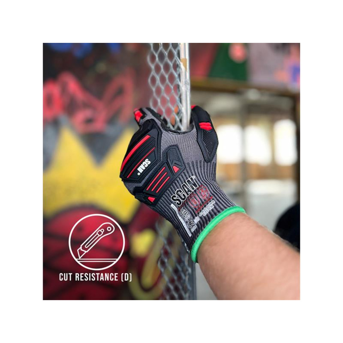 1 x Pair of Scan Nitrile Palm Impact Cut D Gloves - XL (Size 10).
