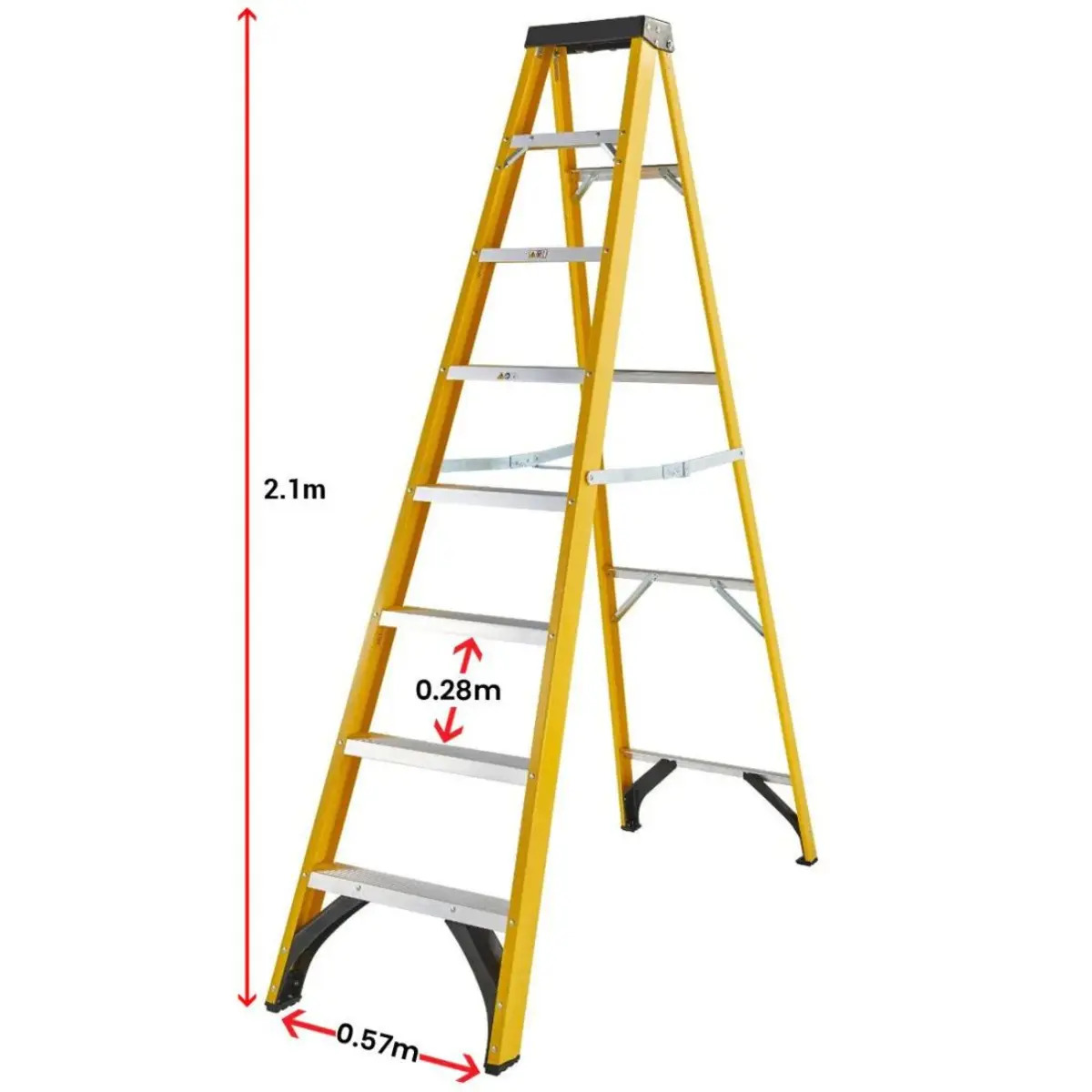 Excel Electricians Fibreglass Step Ladder 7 Tread 2.1m Heavy Duty